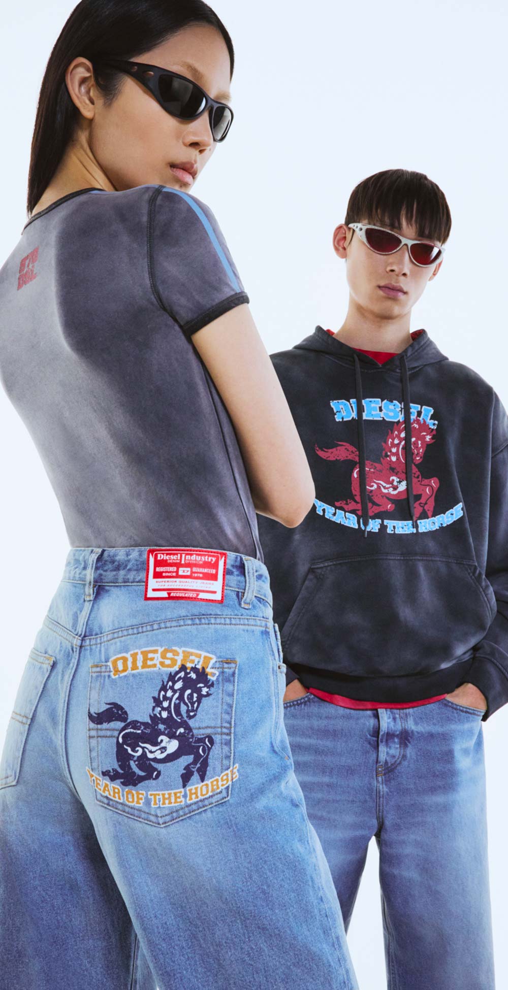 Célébrez l'Année du Cheval avec une nouvelle capsule genderless. La collection comprend du denim, des T-shirts et des hoodies arborant l'imprimé cheval, reflétant les valeurs fondamentales de Diesel : anticonformisme, expression de soi et énergie.